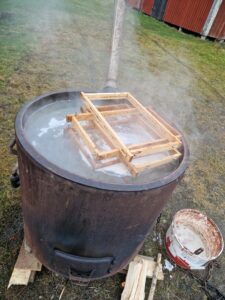 Nu när bina har tagit ledigt för säsongen och mest finns inne i kupan finns en del förberedelser som man som biodlare kan ägna sig åt. Det som jag tänker på är att se över ramar och skattlådor inför nästa säsong. Har jag ramar som behöver smältas ur och tvättas? Har jag skattlådor som behöver ses över ? Vill jag göra det själv så kan det se ut som på följande bilder.